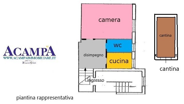 – Spazi intelligenti: ingresso in disimpegno, cucina abitabile, ampia camera da letto, bagno + comoda cantina da 11mq